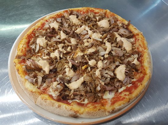 Pizza met döner, kaas en tomatensaus
